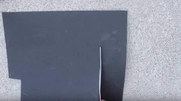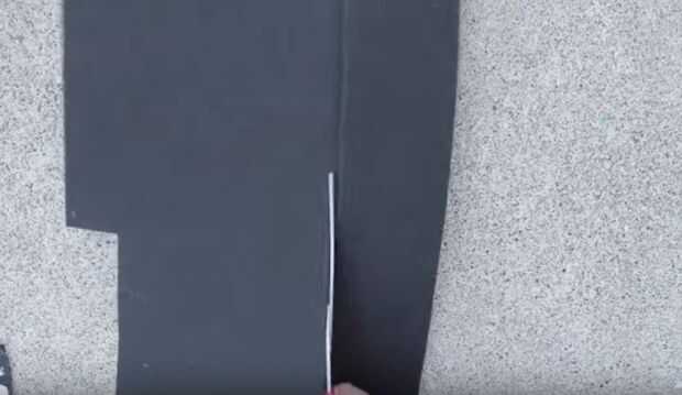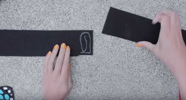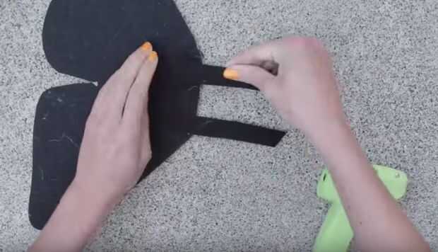 Para crear una banda que se ajusta alrededor del perro, corte una tira de fieltro atiesado negro aproximadamente de 3.5" de ancho. Use esto como guía para cortar otro (si uno no es lo suficientemente larga para caber alrededor de su mascota). Luego pegamento caliente los extremos de estos juntos para formar una sola pieza larga de fieltro.