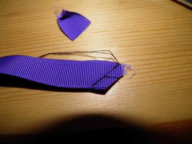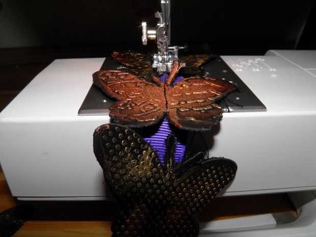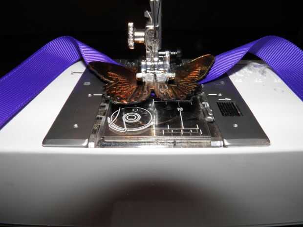 Continúe mariposas de costura en la cinta de un lado y por el otro lado hasta que todas las mariposas son cosidas a las cintas.