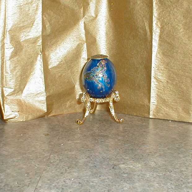 pegué chapas decorativas de metal en la parte superior e inferior del huevo.