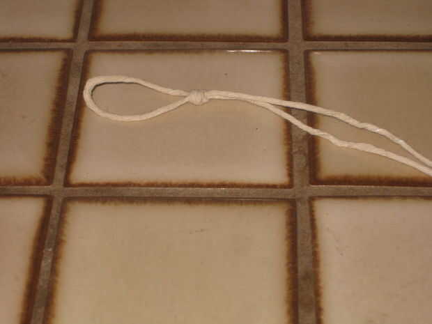 Antes de comenzara a correr por debajo de cuerda (ver materiales, arriba), estaba quitando aproximadamente una longitud de 2 pies, doblar en la marca de 2 pies y atar un nudo que le da un pequeño bucle, entonces tirando la longitud doblada hasta el final original de la corte y cortarlo apagado allí.