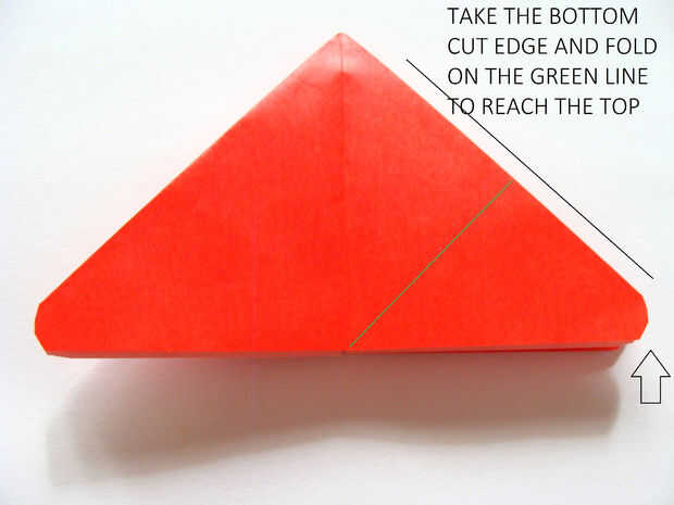 Abrir y plegar el borde curvado a lo largo de la línea verde en la parte superior.
