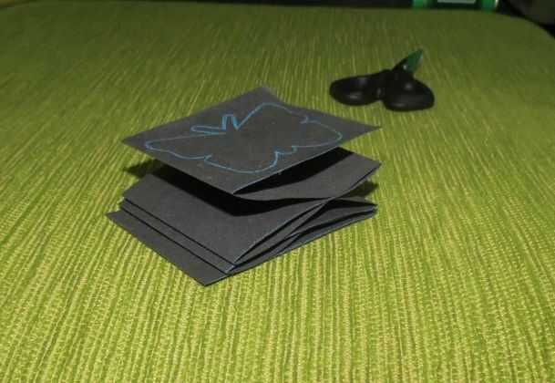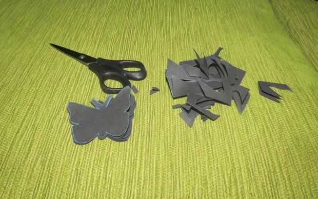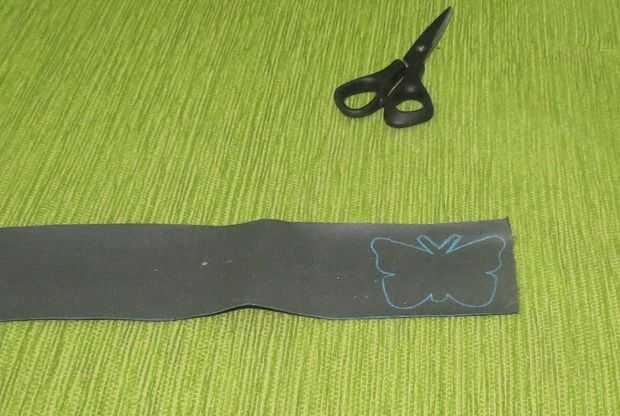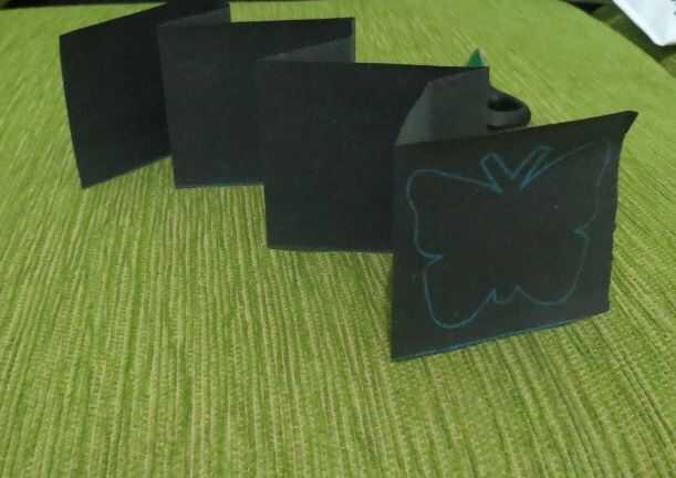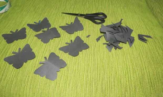 Tomar franja larga de papel del arte negro y dibujar una mariposa en un extremo, luego comenzar a doblar el papel en a zig-zag y recortar la mariposa, de esta manera que se pueden cortar muchas mariposas a la vez.