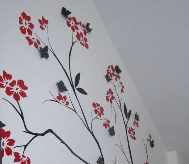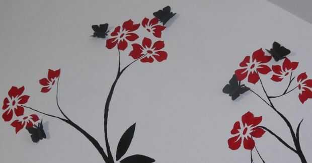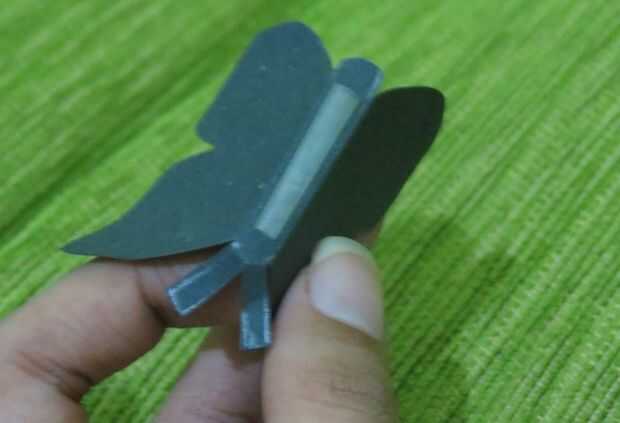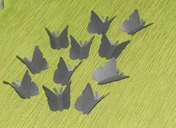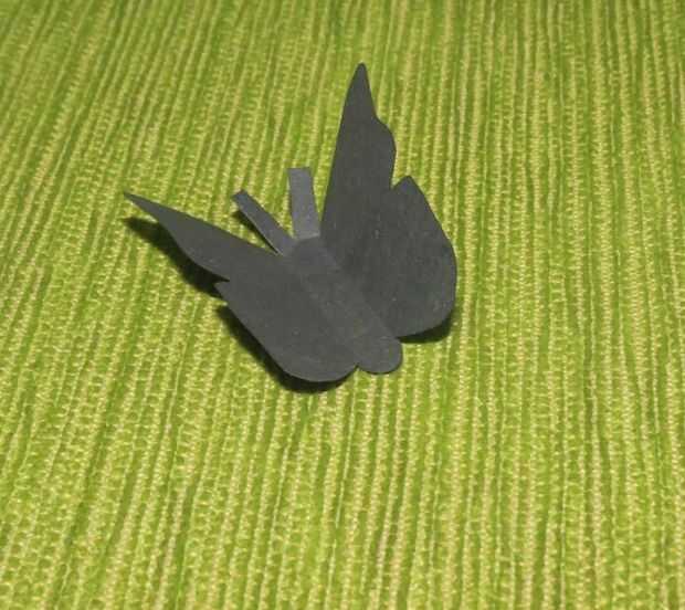 Doblar las alas hacia arriba, dejando la parte del cuerpo; pegar un pequeño trozo de cinta de doble cara en el cuerpo. Despegue el papel y pegar las mariposas en la pared.