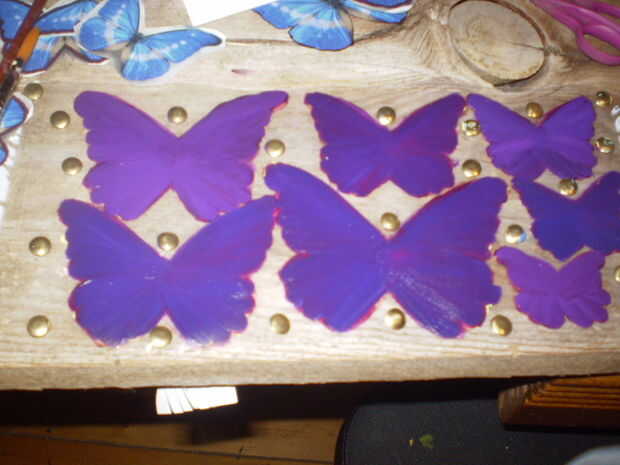 Mira la foto de la mariposa y pintar la mariposa en su plástico con ese color. Si la mariposa es de 2 colores, como un monarca, pintar el color más claro (es más fácil pintar sobre).