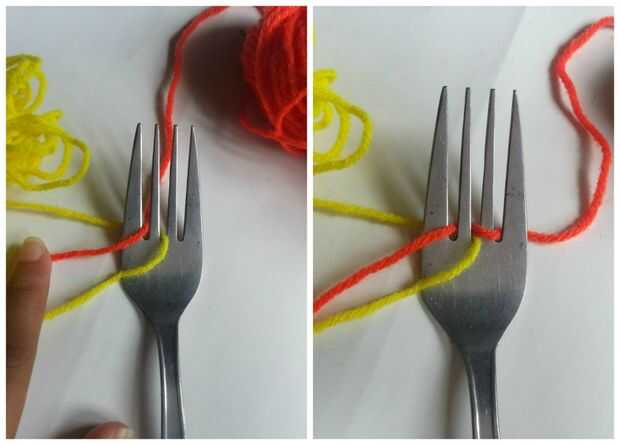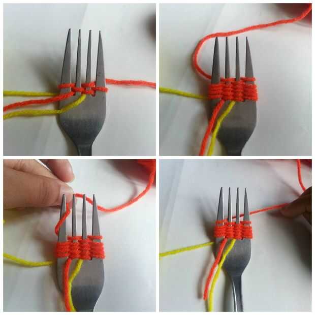 Ahora tejer el hilado sobre-bajo alrededor de los dientes,
