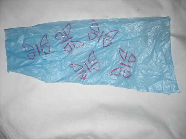 En primer lugar cortar un cuadrado de la bolsa que desea utilizar y colocar la plantilla y dibuja las formas que desee. A continuación recorto asegurándose de que su conjunto de una pieza. Recortar las piezas a obtener e incluso de la forma y para asegurarse de que no tiras no deseadas o chips en el plástico. Aquí tiene un pequeño par de tijeras es útil