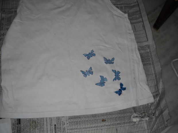 Colocar las mariposas o cualquier forma te desea en la camisa y ajustar el dobladillo hasta que estés satisfecho con la manera que miran. Mejor hacerlo en el piso, por lo que se incluso la presión de la plancha. Ahora ponga su periódico en el suelo junto a su plancha. Girar la plancha en la posición más alta.
