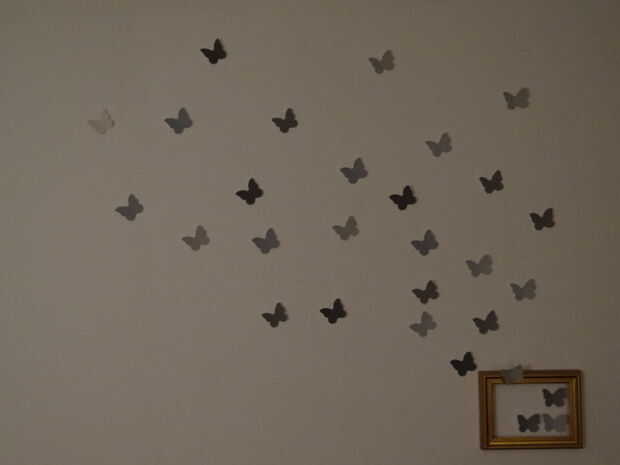 Paso 1:Paso 2:Paso 3:Paso 4: Dibujar una forma de mariposa con el rotulador sobre un papel de colorPaso 5: Córtelo hacia fueraPaso 6: Conseguir un pedazo de cinta adhesiva y pegarla en la parte posteriorPaso 7: Doblar la mariposa por la mitadPaso 8: