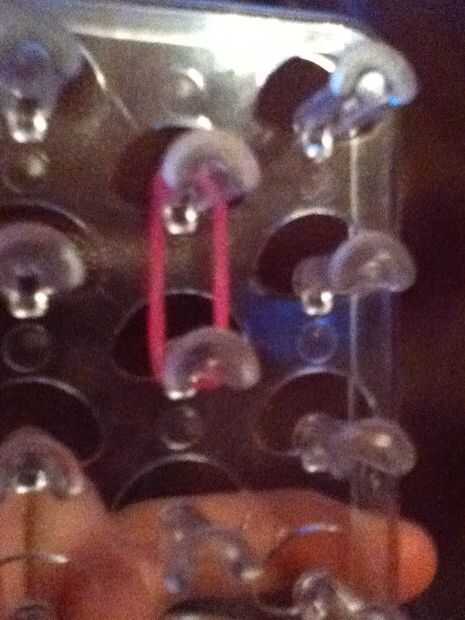 Poner una banda en la parte superior 2 en el centro. Luego debajo poner 2 bandas y otros 2 en los que debajo de eso (mira la fotos lo siento im un poco basura a explicar)