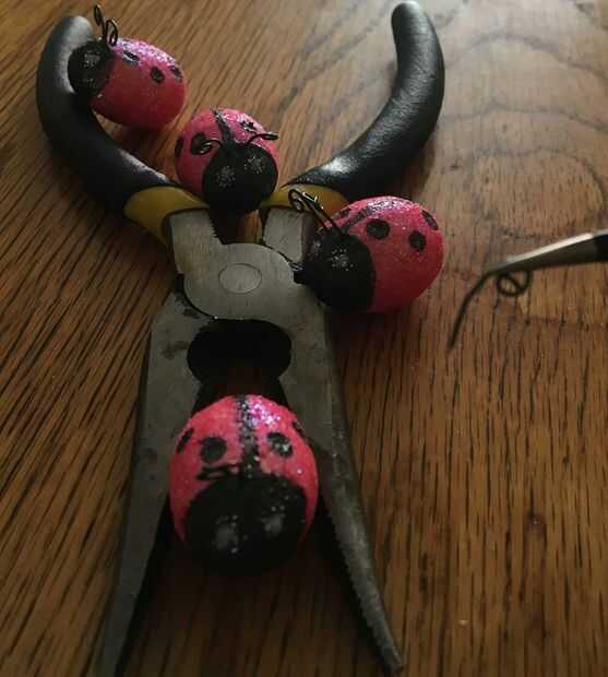 Con las pinzas, cortar dos trozos de alambre de 1 pulgada de largo y enrollamiento de los extremos. Luego simplemente presionan en la cabeza de mariquitas justo detrás de los ojos. En este momento puede introducir un alambre en la parte superior y enrollamiento en forma de bucle para atar a pendientes o introducir un alambre en la parte inferior para hacer un soporte como en la foto o para colocar cosas como flores para el pelo o coronas o lo que sea realmente. Y eso es todo! Es un proyecto simple pero tiene muchas posibilidades, y si las mariquitas no tuyo siempre podría intentar usando huevos amarillos en lugar de abejorros!