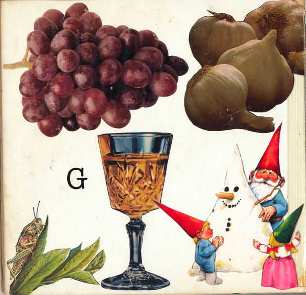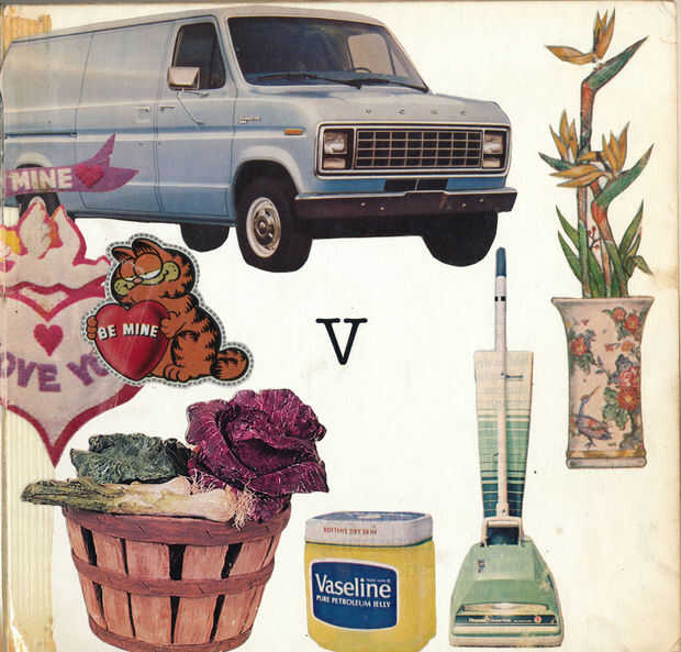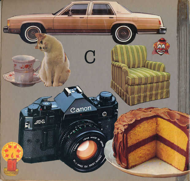 When my (31 year old) daughter was little I made her an alphabet book. He utilizado el collage, el tablero de lámina perimétrica, cinta y pegamento. Hemos pasado muchas horas juntos mientras ella exploró e identifica la variedad de imágenes que encuentra en cada página. Es curioso ahora después de todo estos años para volver a visitar el libro del alfabeto. Hay un carro pero no Wii, no hay una Xbox o un i-phone, en su lugar había un teléfono de tono de toque. Sellos fueron 20 centavos y hay una cámara que utiliza película y creó negativos de 35mm! Mi favorita es la página de "C", sin ordenador, sin embargo, hay un pastel de Chocolate, una silla cómoda y una cámara de Canon.