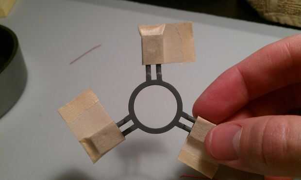 Asimismo se construyeron los soportes de apoyo. 3D imprimí estas otra vez (pero no shapeways esta vez), y las capas individuales son bastante accesibles. Un áspero papel de lija (grano 220 o 320) hace bastante trabajo de esto. También usé un archivo bien para asegurarse de que las caras eran todavía cuadradas y los bordes eran distintos después de lijar. Agujeros grandes o lagunas (dependiendo de la calidad de impresión), he tenido buenos resultados usando un modelo cuerpo relleno y lijado hacia abajo. Las caras interiores de los soportes se quedaron un poco más (ya que te oculta de todos modos). Había unos lugares donde la impresora faltó material, o la cáscara fue un poco más delgada dejando un pequeño agujero. En lugar de tratar de llenar todos esos vacíos y conseguir un acabado perfectamente liso, dejé algunas de las marcas más pequeñas como son.