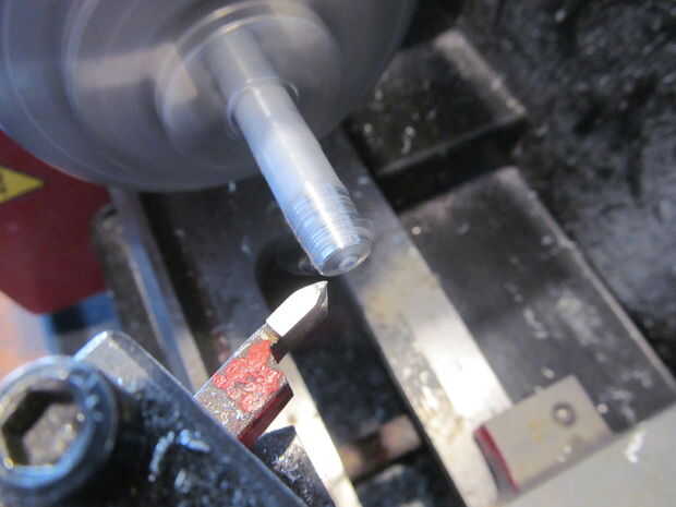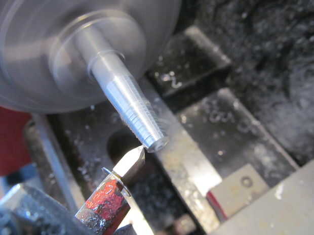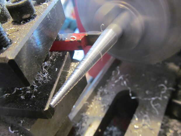 Compensar mi carro del torno a 5 grados. Entonces corrí a la broca de corte hacia adelante y hacia atrás hasta un punto. No quieren la punta demasiado fuerte si no penetrarán paracord en lugar de slip alrededor de él.