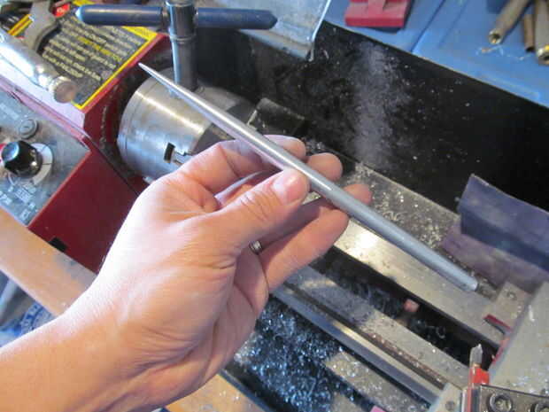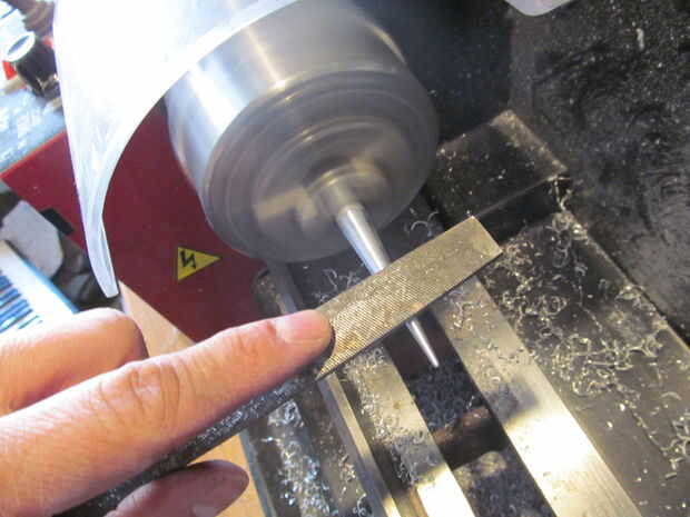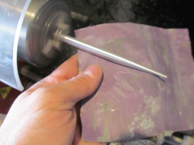 Para facilitar el hombro izquierda del corte de 5 grado, me encontré un archivo sobre la espiga. Hacer esto hace mucho más fácil empujar la espiga completamente a través de un nudo. Entonces usé papel de lija para quitar las marcas de herramientas.