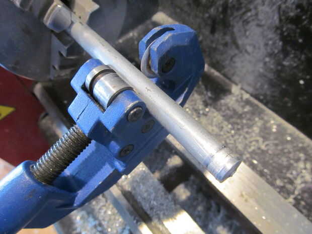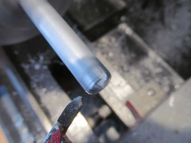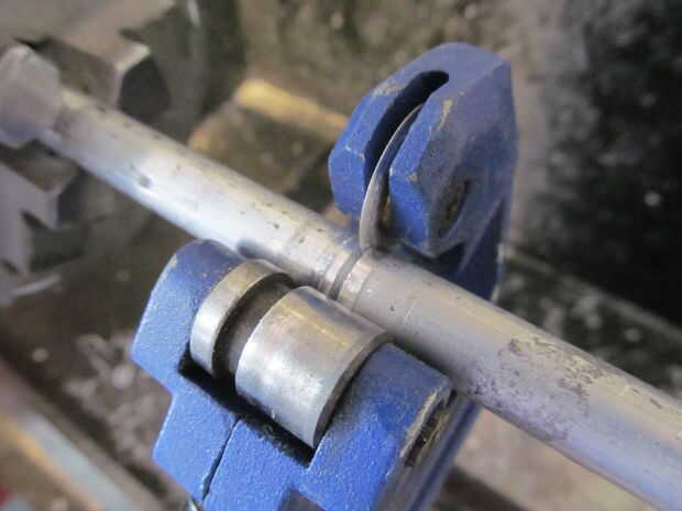 No hacer una medición exacta. Sólo coloca la espiga en la palma de mi mano y había marcado por lo que la longitud sea unas pulgadas adivinar más allá de mi dedo índice. Luego cortar con un cortador de tubo y trabajado a máquina del final redondo.