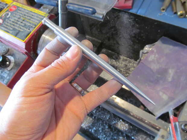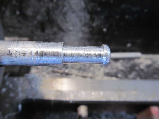 Con mis pinzas I medido y marcado 15mm.  Cortan un surco de unos 2mm de profundidad. Esto evitará que el nudo de cabeza de turcos en lugar mientras que la espiga está en uso.
