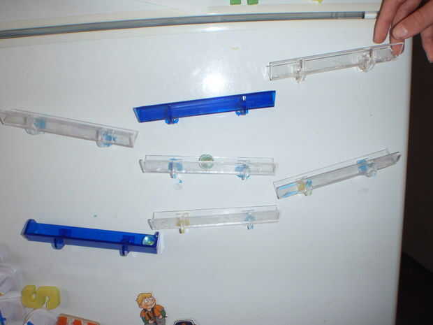 Convertir la puerta del refrigerador en un patio cinético!!!!!! por 3D impresión magnética mármol ejecutar archivos STL en los siguientes pasos.Y una vez que has probado todas las posibles permutaciones y combinaciones con las pistas de mármol, añadi
