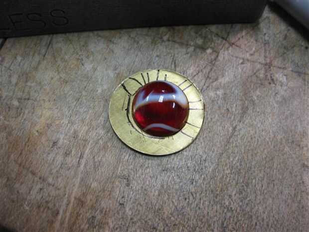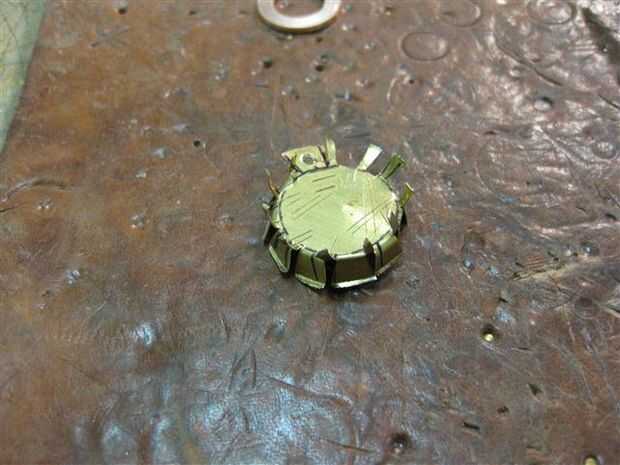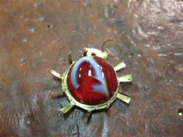 Utilizando mis pinzas, cerré las lengüetas de bronce – para garantizar el mármol dentro.