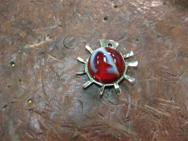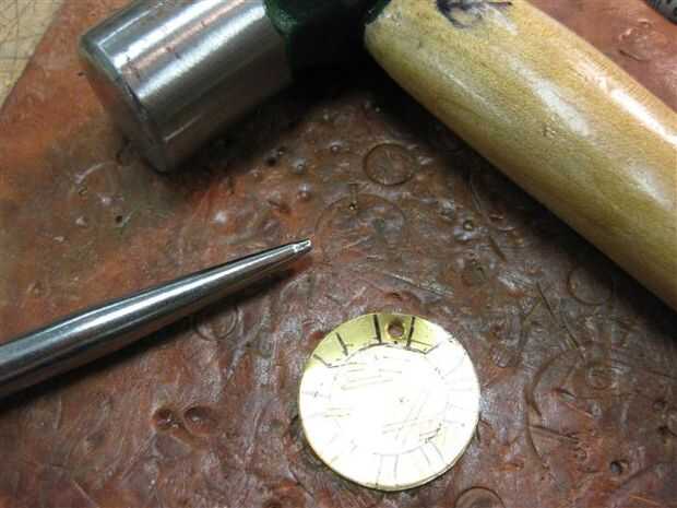 Usando el disco de 1 pulgada; Comencé con un punzón simple poner un agujero en el borde para el anillo de 8 mm.