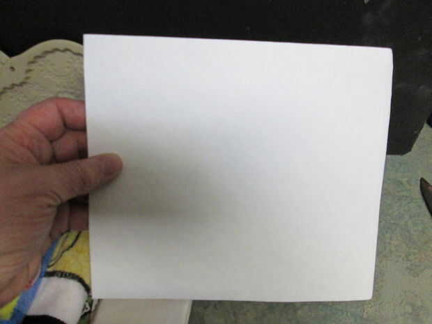 Este es el tipo de papel que viene en el kit, espesor y cuadrados de 8 pulgadas.  Según el paquete una hoja hará 3 o 4 modelos.  Llena 3 de mis moldes.