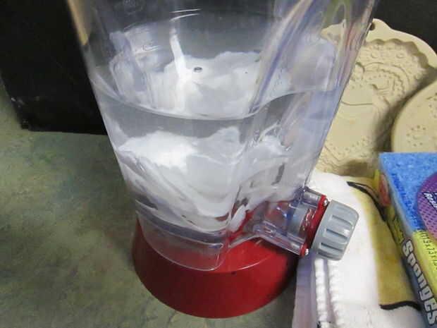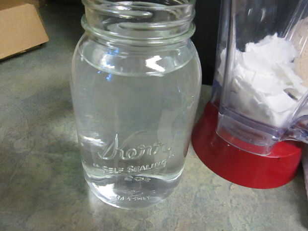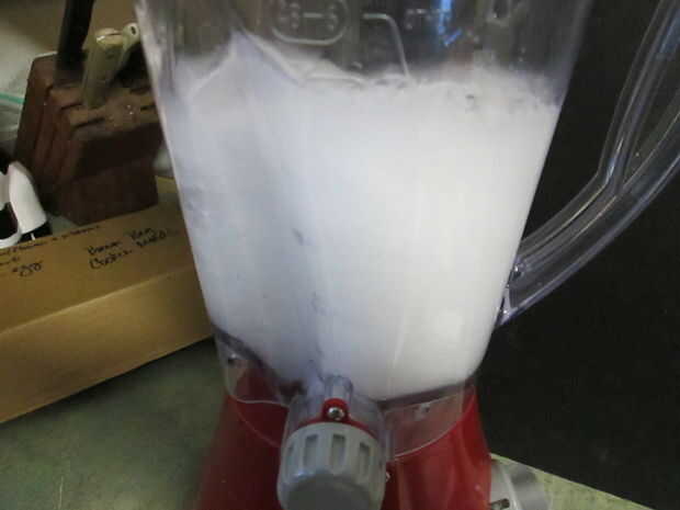 Añadir un cuarto de galón de agua tibia en la licuadora y encenderla durante un minuto.