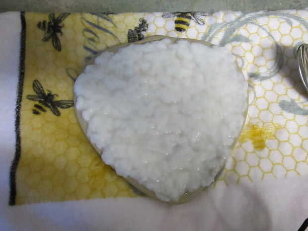 Pour su papel mojado en el molde. Difundirlo alrededor con los dedos procurando que el papel quede sobre el borde del molde. Esto le da algo para agarrar mano de eliminarlo cuando se seca. También le da un aspecto agradable hecha a mano. Ahora es el momento de conseguir tanta agua en el papel como sea posible.