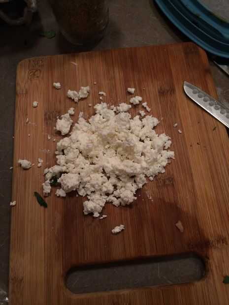Desmenuzar el queso feta y repartidas en la parte superior.