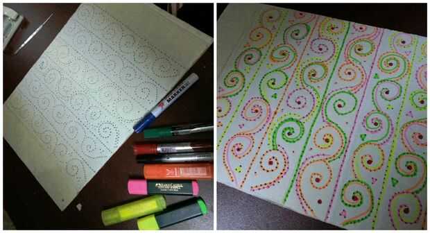Cuando termines con hacer estallar los orificios, utilice marcadores para delinear sobre el diseño. Los colores de los marcadores (una pequeña área alrededor del agujero) chispearán cuando la lámpara está encendida, que luce hermosa. Puede utilizar otras técnicas de reflexión de color, no podía subir con cualquier otra cosa.