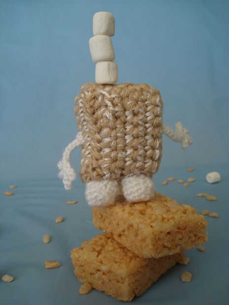 Marshie es una criatura (o como él prefiere, un monstruo) que vive en los grupos de 4 alimentos de cereal de arroz crujiente, malvaviscos, jarabe y mantequilla. De alguna manera la reacción química entre los grupos de alimentos lo hizo como un cuadrado de Rice Krispies, o una plaza de marshmallow o una golosina malvavisco, o lo que quiera llamar a esa pegajosa blandita cuadrada snack. Eres lo que comes, supongo.