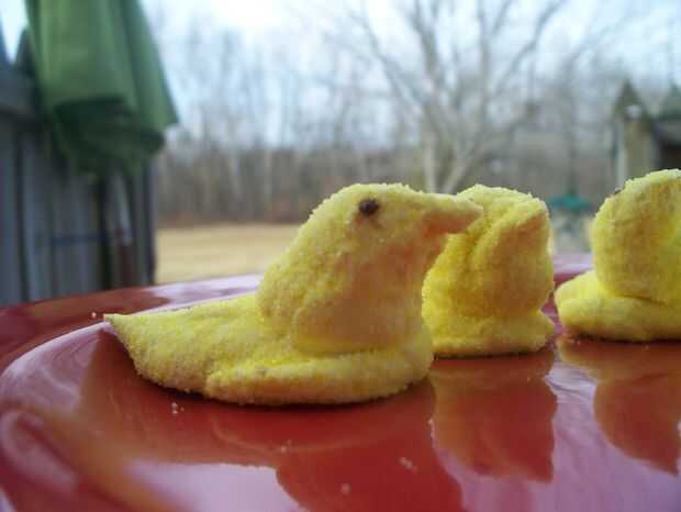 Píos de diferentes formas y colores de línea los pasillos de la tienda de comestibles alrededor de Pascua. Son los dulces conocidos por su crujiente azucarado en el centro de malvavisco pegajoso exterior y ligeramente rancio. Tengo amigos que los amo