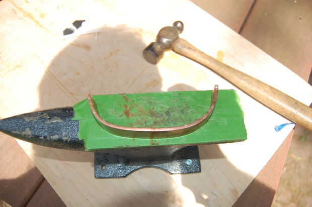 Una vez la pieza comienza a ver más o menos como una pulsera que entonces necesita voltear la pulsera y suavemente cierre las cosas usando el lado plano del martillo.