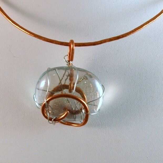 A continuación, cortar y martillo 2" pedazo de alambre. Hacer una fianza de esto creando un bucle alrededor de una parte de la espiral de cobre y otro bucle alrededor del alambre del cuello. Envuelva el exceso alambre fino alrededor de él para mayor seguridad.