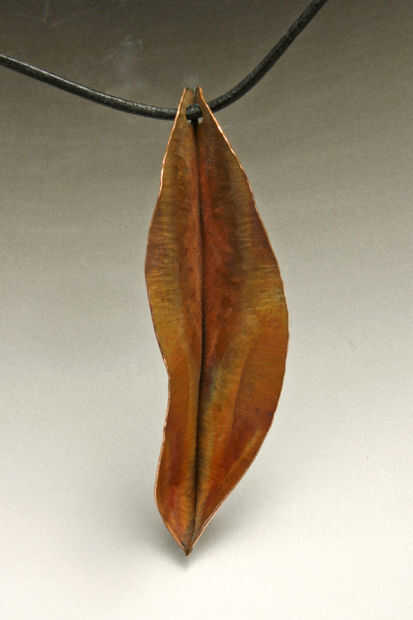 este colgante inició como una interesante hoja enrollada. Muchas capas de arcilla de metal precioso de plata fino fueron pintados, capa por capa. A continuación, la plata fue calentada por un soplete hasta que la hoja se quemó lejos y fundido de la p