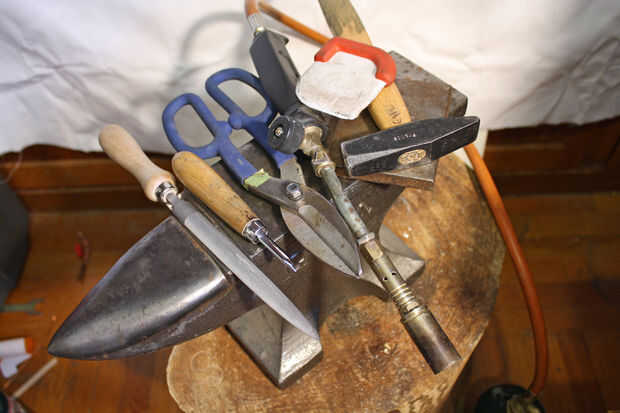 Herramientas de limpieza: Archivos, lustradoras. Una pulidora es principalmente un trozo pulido de acero. Cualquier acero liso hará el trabajo, como el mango de un destornillador o la parte de atrás de un cuchillo de mantequilla.