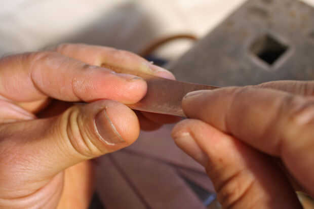Después del corte, fresas de borde deba ser limpiada. Se encuentran generalmente donde los esquileos tuvieron que parar y empezar de nuevo. La forma de la curva también puede ser refinada en este punto con un archivo.