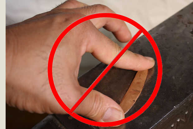 Siguen algunas sugerencias sobre cómo evitar golpear la mano de la explotación. Mantenga la mano de la celebración del yunque. Puede contener una parte de la forma en el borde del yunque. Empezar a martillar en el centro y trabajar de la mano de la explotación. Al llegar al final, agarra el otro extremo y otra vez, a partir de la mitad trabaja de la mano de la explotación. Cuando estoy trabajando con niños pequeños, voy a poner el yunque en el suelo y cinta adhesiva los extremos de la forma al yunque.