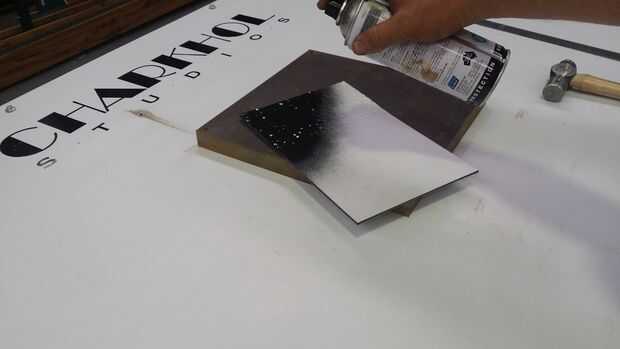Una vez ha martillado la superficie completamente puede limpiarlo con un paño seco y aplicar una capa de pintura negra.