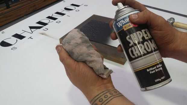 Cuando se haya secado la pintura negra puede comenzar la tonificación con la pintura del cromo.