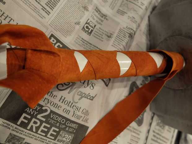 • Cortar tiras de cuero y envolver alrededor de la longitud del pvc