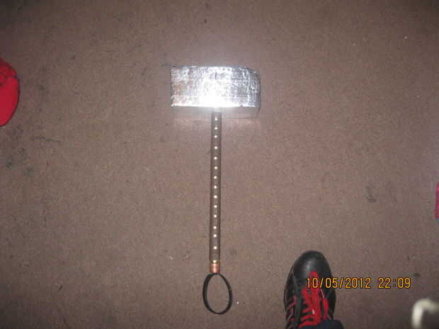 cubierta de la manija de cuero pegado o alfileres para sujetar en su lugar. Guardé los pasadores y cubrió el lado opuesto para detalles de como se veia fresco.