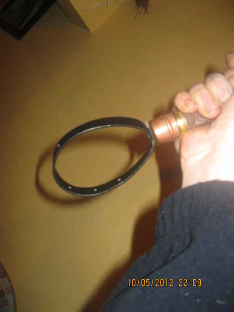 utiliza una oliva de latón y perforar un agujero en un extremo de casquillo de cobre para acabar con la empuñadura