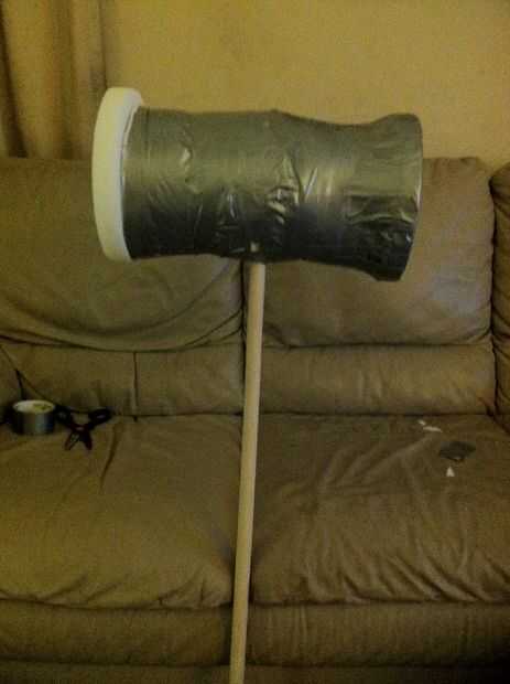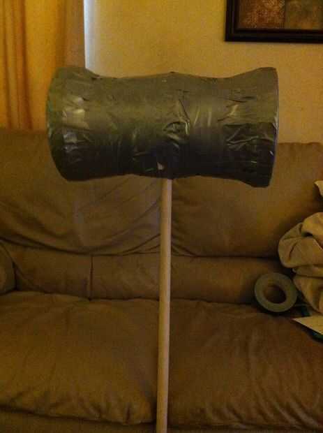 Una vez que ambos extremos están cubiertos, mover al cuerpo. Tomar las tiras de 12"- 16" y envolver firmemente alrededor de la circunferencia de la cabeza de mazo. Tómese su tiempo y evitar las arrugas cuando se puede, pero no obsesionarse sobre él. Ya tienes más que preocuparse.