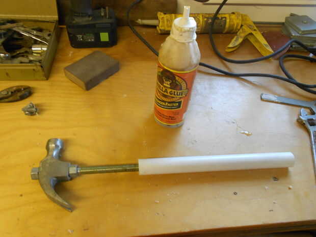 Pegamento gorila es mi favorita y es algo que tengo así que me fui con eso. Primero me goteó hacia abajo el tubo y había recubierto el interior pero quería usar mucho así que puse algunos abajo de la longitud de la barra. Hizo girar la tubería un montón y se aseguró de que el pegamento consiguió en todas partes en y alrededor de allí antes de poner secar.