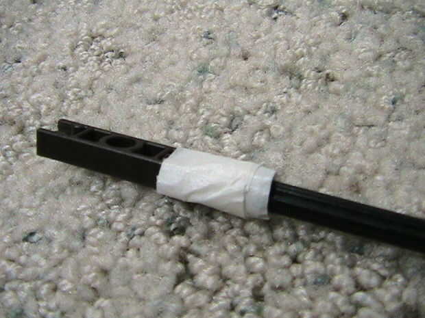 De la cinta el espaciador y el conector naranja/marrón a reforzado Rod negro. Tenga en cuenta para mantener un poquito de espacio entre el espaciador y el conector. Esto actúa como un amortiguador para no volar el conector naranja/marrón de cuando disparó.