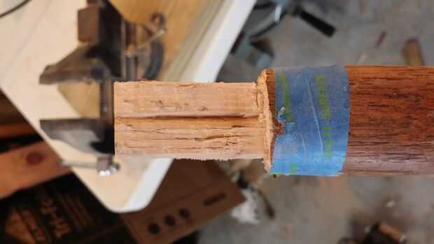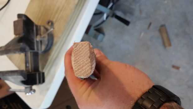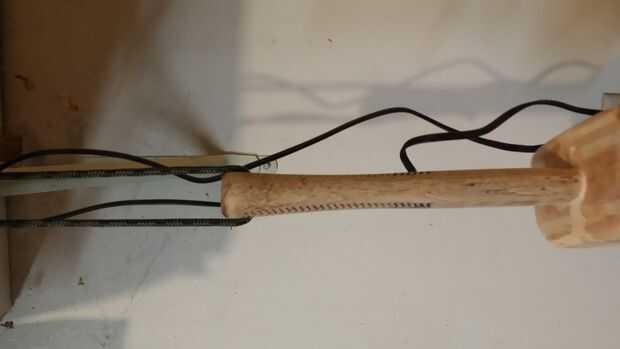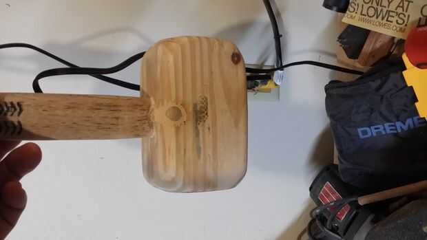 Ahora es el momento para perforar el agujero para el pasador del mazo y manejar juntos. Taladre el agujero para obtener la marca la longitud del pasador. La espiga en la cola de la capa y deslice el pasador en el agujero. Dejarlo todo seco y vamos a hacer que se vea bien.