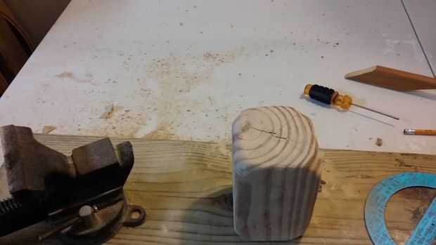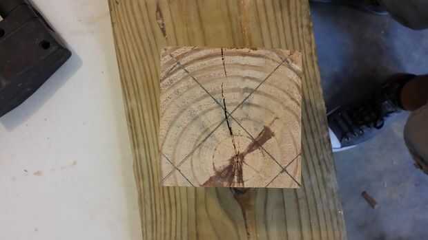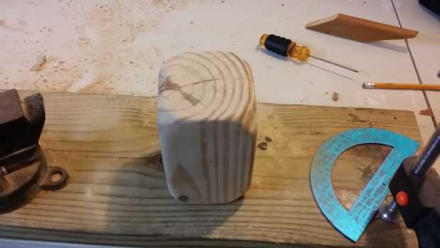 Así que tome mi pedazo de 4 x 4 y empieza por tomar medidas y marcar mis líneas para los cortes. Haciendo los cortes golpear las esquinas fuera en ambos extremos. Entonces lijar todos los cortes y bordes (esto era todo estrictamente para las miradas y no para la función).