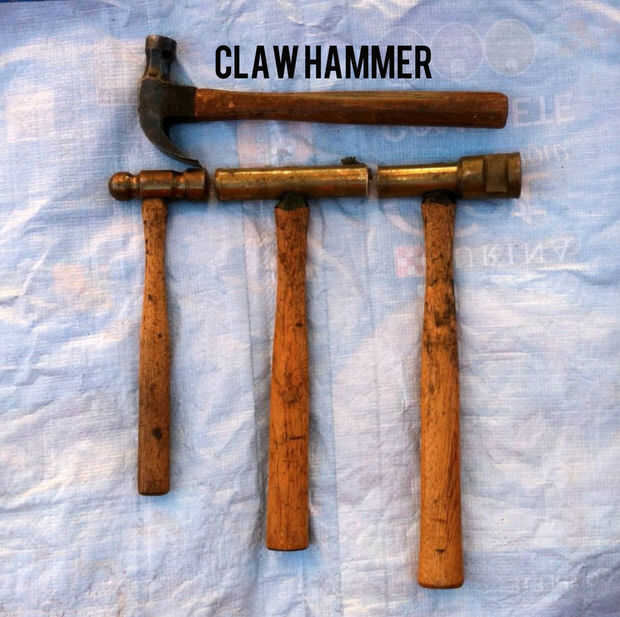 La primera foto muestra cómo se veía la varilla original antes de corte en 3 partes. No veía ninguna razón para reducir el tamaño de los dos martillos más grandes, por lo que dejé "inacabado" después de cortar en dos trozos. He estado contento que hice. Uno ya se mete en espacios más pequeños con más peso, y con la perilla en el extremo es lo suficientemente masivo para puestos de trabajo más grandes. Incluí el martillo en la 2 º foto para dar una perspectiva sobre el tamaño del latón que.