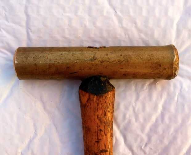 Con el tiempo, la cara de un martillo de latón se "seta", lo que significa cambian de forma y llamarada fuera similar a la apariencia de un hongo. Es mejor que arruinar todos sus punzones y cinceles con un martillo de acero. Cuando eso ocurre en su martillo de latón, es fácil de moler de la llamarada, restaurando su forma. La foto 2 muestra cómo este martillo se quema hacia fuera. También puede ver las marcas donde tierra apagado previamente.