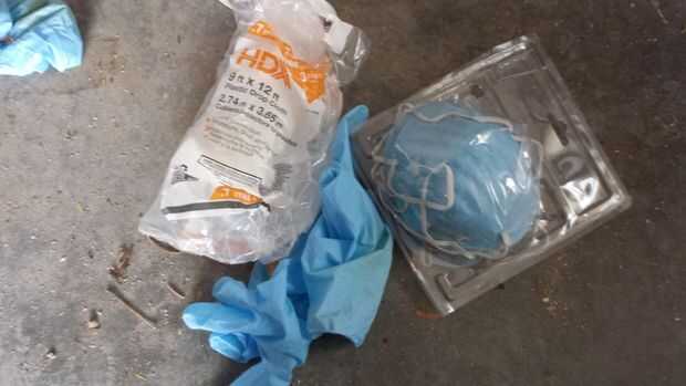 Equipo de pintura en aerosol (mascarilla, guantes, periódico)