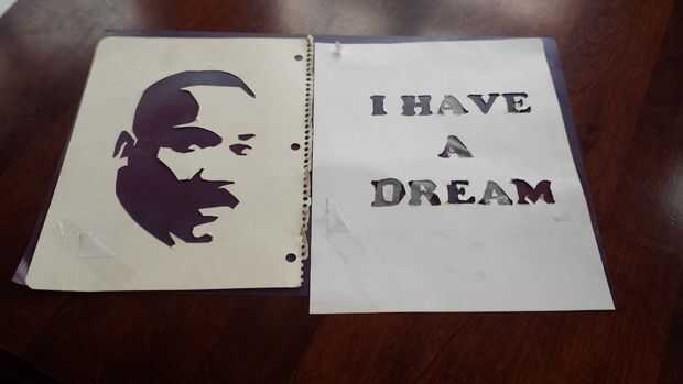 Cortar la impresión hacia fuera y pegamento o cinta adhesiva a un toque, pero fácil de cortar material. No tenemos cualquier cartulina así que utilicé una vieja cubierta de la notebook